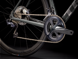 Een lichtgewicht en aerodynamisch 500 Series OCLV Carbon frame en vork, Bontrager Aeolus Elite 35 carbon wielen, een complete Shimano Ultegra 11-speed aandrijving en krachtige Ultegra Flat-Mount schijfremmen.